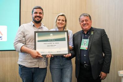 Porto Alegre, RS, Brasil - 17/10/2025: A Secretaria Municipal do Meio Ambiente, Urbanismo e Sustentabilidade (Smamus) recebeu oficialmente, nesta sexta-feira, 17, o selo Tree Cities of The World (Cidade Árvore do Mundo), concedido pela Organização das Nações Unidas para a Alimentação e Agricultura (FAO) e pela Fundação Arbor Day, dos Estados Unidos. A certificação foi entregue durante o último dia da edição comemorativa dos 40 anos do Encontro Nacional de Arborização Urbana (Enau), realizado no auditório do Centro de Monitoramento e Contingência Climática da Smamus. Foto: Sergio Louruz / SMAMUS / PMPA