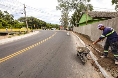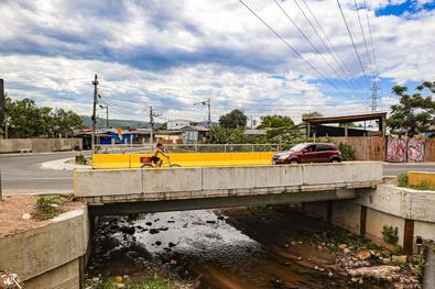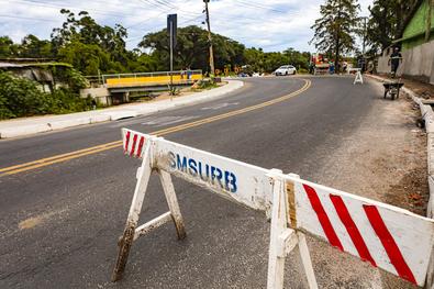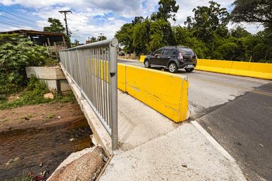 Porto Alegre, RS, Brasil, 22/12/2025: Obras da ponte do Salso, que liga as ruas Nilza da Silveira e do Cedro, no bairro Restinga. No local foram executadas obras de infraestrutura e alargamento da rua do Cedro, assim como serviços de drenagem, colocação de meio-fio, construção de muros e pavimentação. Foto: Alex Rocha/PMPA