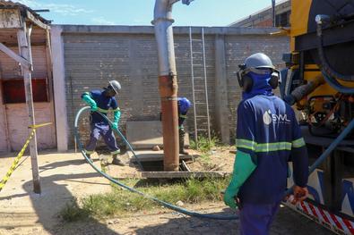 Porto Alegre, RS. 26/01/2026. DMAE realiza limpeza de redes de drenagem no bairro Farrapos.