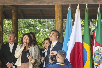 Porto Alegre, RS, Brasil, 14/11/2025: A prefeita em exercício, Comandante Nádia, participou, na tarde desta sexta-feira (14), do ato comemorativo aos 45 anos de irmandade com a Província de Shiga-Japão Praça Província de Shiga. Foto: Alex Rocha/PMPA