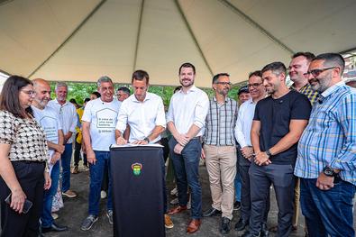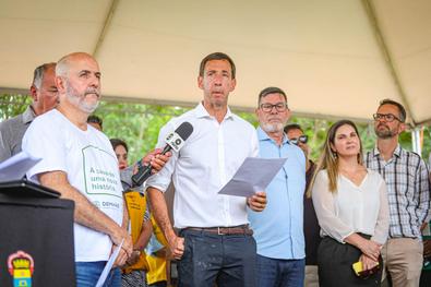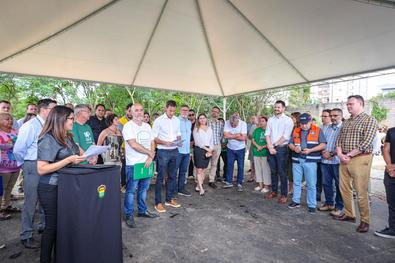Porto Alegre, RS, Brasil, 08/12/2025: A Prefeitura de Porto Alegre e o Sindicato das Indústrias da Construção Civil do Estado do Rio Grande do Sul (Sinduscon-RS) realizaram nesta segunda-feira, 8, às 11h, a entrega de 31 unidades habitacionais na Rua Pedro Boticário, no bairro Glória. As moradias foram destinadas a famílias atingidas pelas enchentes e por outros eventos climáticos que impactaram a cidade. As casas foram doadas ao município pelo Sinduscon-RS, como parte de uma iniciativa voltada à reconstrução e ao apoio às populações mais vulneráveis diante dos recentes desastres naturais. Foto: Alex Rocha/PMPA