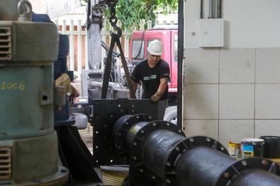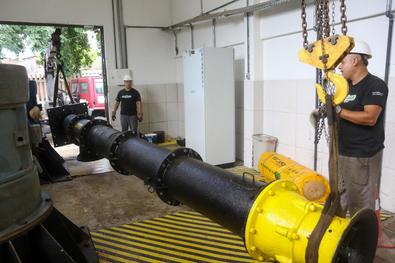Porto Alegre, RS.30/01/2026. O Departamento Municipal de Água e Esgotos (Dmae) realizou a manutenção de uma bomba da Estação de Bombeamento de Águas Pluviais (Ebap) 16, responsável pela drenagem urbana da maior parte do bairro Menino Deus.