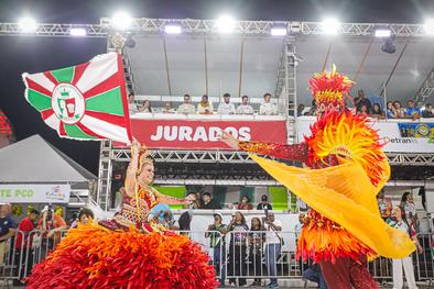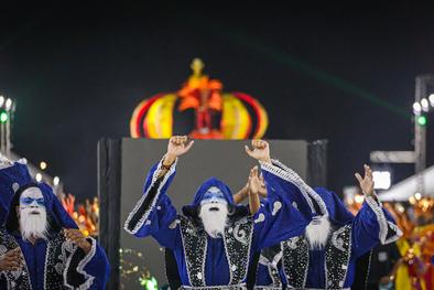 Porto Alegre, RS, Brasil, 27/02/2026: A S.B.C.F. Escola de Samba Protegidos da Princesa Isabel apresentou nesta sexta-feira, 27, no Carnaval de Porto Alegre, o enredo A Alquimia da Existência – Protegidos pela Magia dos Quatro Elementos. A escola propôs uma jornada simbólica e ancestral para desvendar as forças invisíveis que sustentam o universo, apresentando os alquimistas como artesãos do invisível que buscam decifrar a essência da vida em seus laboratórios. Foto: Alex Rocha/PMPA