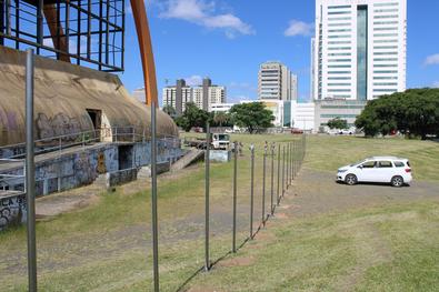 Porto Alegre - 27/11/2025: A Secretaria Municipal do Meio Ambiente, Urbanismo e Sustentabilidade (Smamus) iniciou a colocação de tapumes de chapa metálica ao redor do Anfiteatro Pôr do Sol, na avenida Edvaldo Pereira Paiva, bairro Praia de Belas. A medida tem como objetivo principal evitar riscos de acidentes enquanto o espaço passa por avaliações técnicas. “A situação oferece risco à integridade das pessoas. Com o isolamento, a ideia é impedir o acesso até que novas avaliações de danos estruturais possam ser feitas de forma segura”, afirmou Alex Souza, diretor de Áreas Verdes da Smamus. Foto: Sérgio Louruz / SMAMUS / PMPA