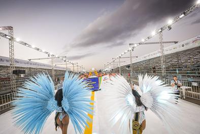 Porto Alegre, RS, Brasil, 27/02/2026: A S.B.C. Bambas da Orgia trouxe para o Complexo Cultural do Porto Seco nesta sexta-feira, 27, o enredo Apaguem as luzes!, uma celebração lúdica e poética ao fascínio da sétima arte. A escola transformou o desfile em uma grande sessão de cinema, o Cine Bambas, onde a narrativa se guiou pelas emoções e sensações proporcionadas pelas telonas, desde o mistério das sombras até o brilho do sucesso. Foto: Alex Rocha/PMPA