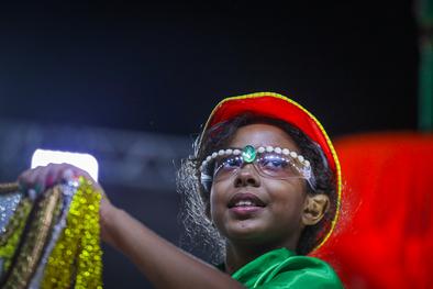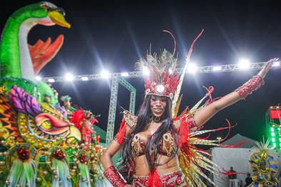 Porto Alegre, RS, Brasil, 01/03/2026: A S.R.B. Estado Maior da Restinga participou do Carnaval de Porto Alegre na madrugada deste domingo (01). A escola apresentou o enredo Restinga, o canto de todos os povos, que reconta a trajetória do bairro, desde a sua ocupação por famílias removidas de diversas áreas de Porto Alegre até a transformação em um polo de cultura e resistência. A narrativa exaltou a superação de um povo que, diante do esquecimento social, construiu com as próprias mãos uma cidade vibrante. Foto: Alex Rocha/PMPA