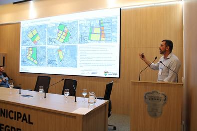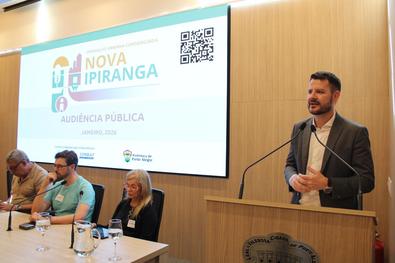 Porto Alegre - 28/01/2026: Nesta quarta-feira, 28, a população participou, de forma presencial e on-line, das duas audiências públicas promovidas para discutir o projeto da Operação Urbana Consorciada Nova Ipiranga, um instrumento urbanístico que busca despoluir o Arroio Dilúvio por meio de uma transformação urbana da área, recuperação ambiental, implantação de parque linear e melhorias em mobilidade, saneamento e drenagem. O prefeito Sebastião Melo participou da abertura. Foto: Sérgio Louruz / SMAMUS / PMPA