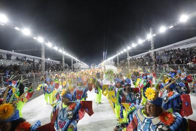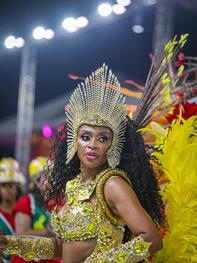 Porto Alegre, RS, Brasil, 27/02/2026: Nesta sexta-feira, 27, o Carnaval de Porto Alegre recebeu a S.C.B.C. Império do Sol. A escola de samba levou para o Complexo Cultural do Porto Seco o enredo Artesãos dos Sonhos, Construtores do Impossível, mas pode me chamar de Escola de Samba. A Império prestou uma homenagem aos operários do Carnaval, os verdadeiros magos que transformam materiais simples em luxo e poesia, celebrando o suor e a criatividade de quem dá vida aos desfiles. Foto: Alex Rocha/PMPA