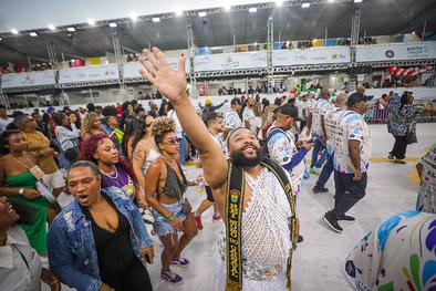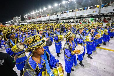 Porto Alegre, RS, Brasil, 01/03/2026: A S.R.B. Estado Maior da Restinga participou do Carnaval de Porto Alegre na madrugada deste domingo (01). A escola apresentou o enredo Restinga, o canto de todos os povos, que reconta a trajetória do bairro, desde a sua ocupação por famílias removidas de diversas áreas de Porto Alegre até a transformação em um polo de cultura e resistência. A narrativa exaltou a superação de um povo que, diante do esquecimento social, construiu com as próprias mãos uma cidade vibrante. Foto: Alex Rocha/PMPA