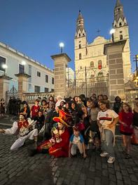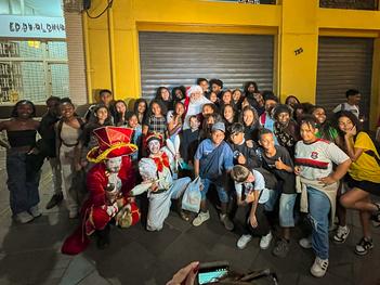 Porto Alegre - 04/12/2025: Natal Alegre 2025: Papai Noel e cortejo natalino passeia pela Rua dos Andradas e encontra turma do Serviço de convivência e fortalecimento de vínculo da SMAS resolvido por ONG do bairro Restinga. Foto: Lisiane Lisboa / PMPA