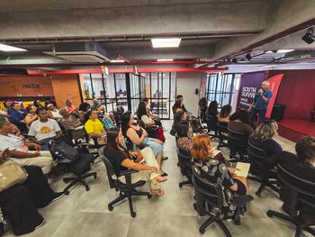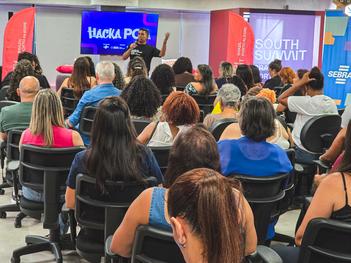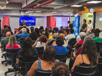 Porto Alegre, RS, Brasil, 21/03/2026: Cinquenta empreendedores de territórios periféricos de Porto Alegre foram selecionados para uma capacitação gratuita do programa HackaPOA, iniciativa da prefeitura que busca ampliar o acesso ao ecossistema de inovação e levar representantes das comunidades a um dos maiores eventos do setor na América Latina: o South Summit Brazil. A formação foi realizada neste sábado, 21, no Co.nectar Hub, no Centro Histórico, com conteúdos voltados à inovação, networking e identificação de oportunidades dentro do ecossistema empreendedor. Foto: Giulian Serafim/PMPA