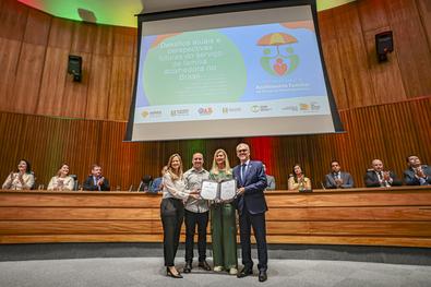 Porto Alegre, RS, Brasil, 04/12/2025: A vice-prefeita de Porto Alegre, Betina Worm e o secretário municipal de Assistência Social (SMAS), Matheus Xavier, participaram, na manhã desta quinta-feira (04), no auditório da sede da MPRS, do ato de assinatura de termo de cooperação entre a Secretaria Municipal de Assistência Social (SMAS) e Ministério Público do Rio Grande do Sul (MPRS), para fortalecer as ações de proteção integral de crianças e adolescentes. Foto: Alex Rocha/PMPA
