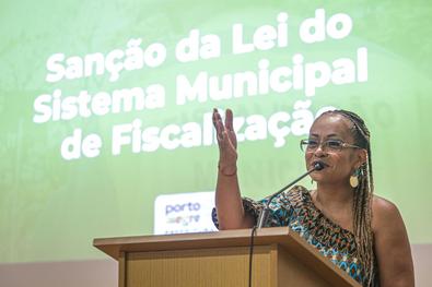 Porto Alegre, RS, Brasil, 20/03/2026: O prefeito Sebastião Melo sancionou nesta sexta-feira, 20, durante solenidade no Auditório da Aiamu (rua dos Andradas, 1.234, 8º andar, bloco B, bairro Centro Histórico), a lei que institui o Sistema Municipal de Fiscalização. O ato marca um passo importante na modernização da gestão pública, com foco na integração das ações de fiscalização, aumento da eficiência operacional e qualificação do atendimento à população em Porto Alegre. Aprovada pela Câmara Municipal em fevereiro, a nova legislação reorganiza e padroniza as atividades fiscalizatórias no município, unificando estruturas e criando uma nova carreira de Agente de Fiscalização Municipal. Foto: Alex Rocha/PMPA