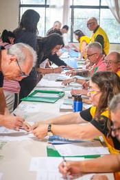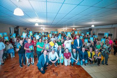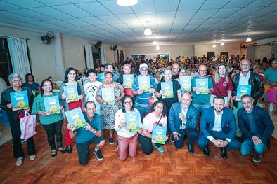 Porto Alegre, RS, Brasil, 15/10/2025: O Departamento Municipal de Habitação (Demhab) realizou nesta quarta-feira, 15, a maior entrega de matrículas do ano, beneficiando 240 moradores no bairro Santa Rosa de Lima, na Zona Norte da Capital. O evento marca o início do processo de regularização fundiária urbana (Reurb) na localidade. A cerimônia aconteceu a partir das 18h30, no Salão Paroquial da Igreja Santa Rosa de Lima, na avenida Bernardino de Oliveira Paim, 82, e contou com as presenças do prefeito Sebastião Melo e do diretor-geral do Demhab, André Machado. Foto: Alex Rocha/PMPA