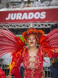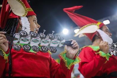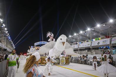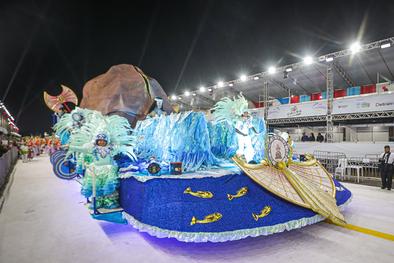 Porto Alegre, RS, Brasil, 27/02/2026: A S.B.C. Bambas da Orgia trouxe para o Complexo Cultural do Porto Seco nesta sexta-feira, 27, o enredo Apaguem as luzes!, uma celebração lúdica e poética ao fascínio da sétima arte. A escola transformou o desfile em uma grande sessão de cinema, o Cine Bambas, onde a narrativa se guiou pelas emoções e sensações proporcionadas pelas telonas, desde o mistério das sombras até o brilho do sucesso. Foto: Alex Rocha/PMPA
