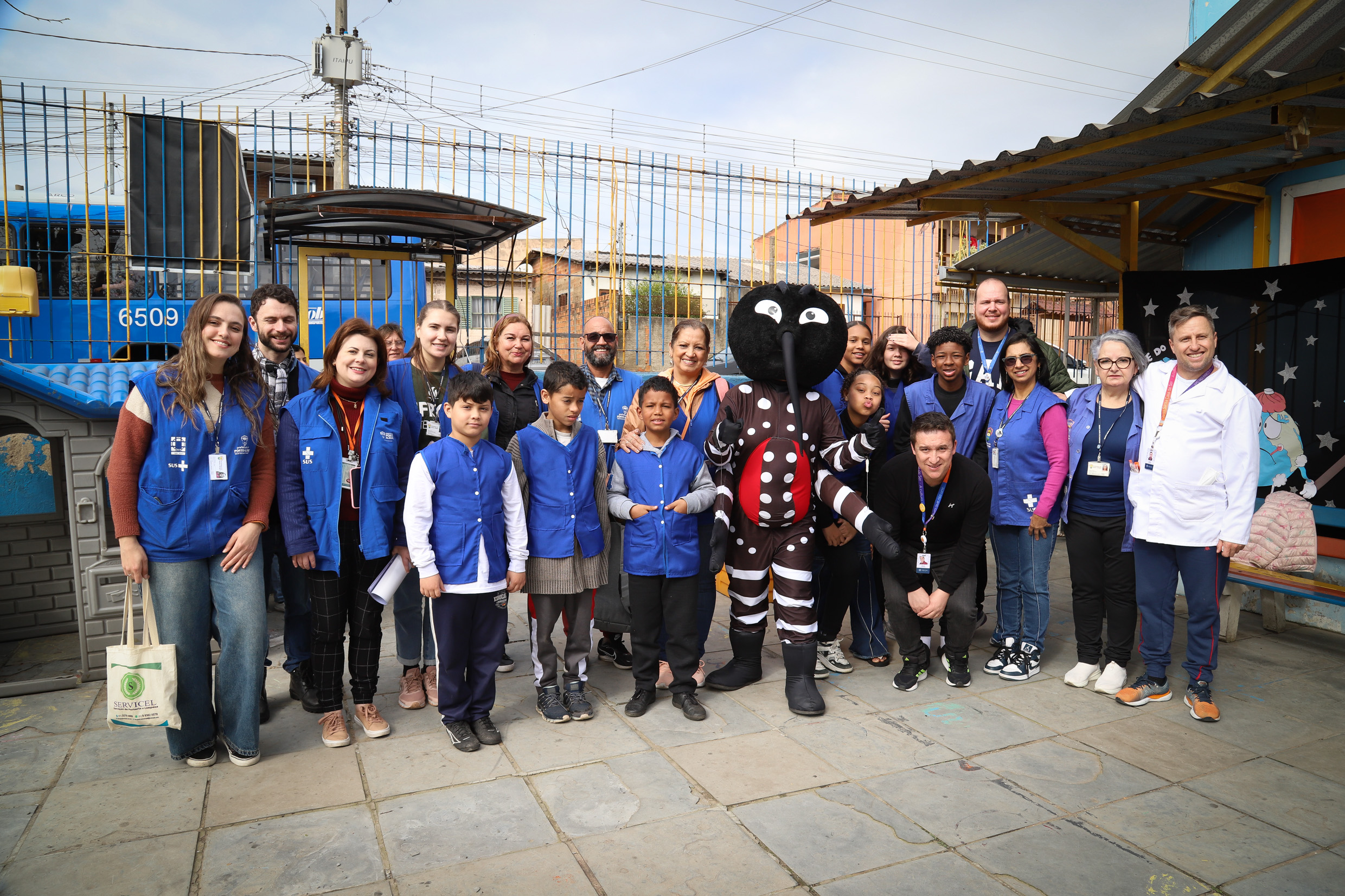 Porto Alegre, RS, 27/08/2025 Agentes de Saúde Mirim é um projeto que envolve os agentes comunitários de saúde (ACS) da unidade de saúde Passo das Pedras II, os agentes de combate às endemias (ACE) da Diretoria de Vigilância em Saúde (DVS) e as escolas públicas locais. No caso adolescentes da Escola Alan Maria Tereza. Um grupo de alunos foi capacitado pelos agentes como estratégia de ampliação no combate ao mosquito da dengue, o Aedes aegypti. A região, no norte da capital, é uma das áreas com maior incidência de casos. Na quarta-feira, 27, os agentes mirins fizeram a sua primeira saída de campo percorrendo ruas e visitando casas. Além de distribuírem folders com orientações, ajudaram a verificar os pátios em busca de focos dos mosquitos. O projeto visa ampliar a conscientização da comunidade sobre as medidas preventivas, como o descarte correto do lixo, a limpeza de calhas e quintais e a vedação de caixas d’água. Foto: Cristine Rochol/PMPA