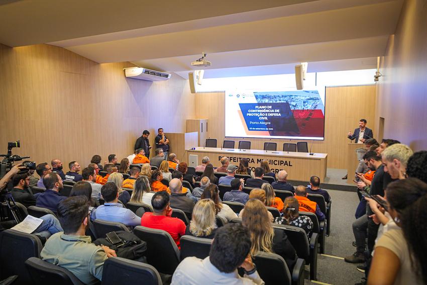Porto Alegre, RS, Brasil, 03/9/2025: A Prefeitura de Porto Alegre apresentou nesta quarta-feira, 3, o Plano de Contingência de Proteção e Defesa Civil (Placon). O evento foi realizado no Centro de Monitoramento e Contingência Climática, na sede da Secretaria Municipal do Meio Ambiente, Urbanismo e Sustentabilidade (Smamus), na rua Luiz Voelcker, 55. Foto: Alex Rocha/PMPA