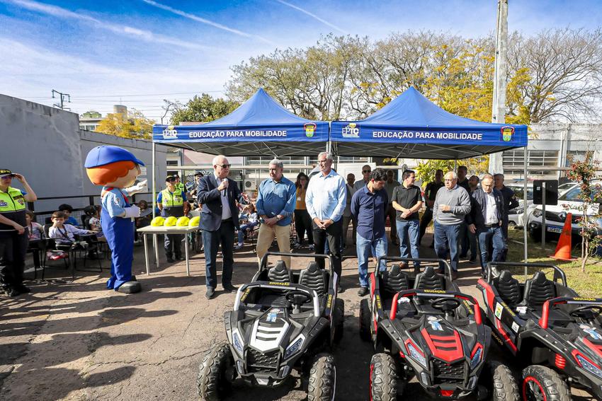 Porto Alegre, RS, Brasil, 18/9/2025: A Prefeitura de Porto Alegre, por meio da Secretaria Municipal de Mobilidade Urbana (SMMU) e da Empresa Pública de Transporte e Circulação (EPTC), realizou a entrega do Circuito Infantil de Trânsito da Escola Pública de Mobilidade nesta quinta-feira, 18, durante evento na rua João Neves da Fontoura, 7, bairro Azenha. O prefeito Sebastião Melo acompanhou a atividade. Foto: Alex Rocha/PMPA