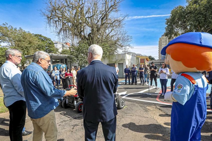 Porto Alegre, RS, Brasil, 18/9/2025: A Prefeitura de Porto Alegre, por meio da Secretaria Municipal de Mobilidade Urbana (SMMU) e da Empresa Pública de Transporte e Circulação (EPTC), realizou a entrega do Circuito Infantil de Trânsito da Escola Pública de Mobilidade nesta quinta-feira, 18, durante evento na rua João Neves da Fontoura, 7, bairro Azenha. O prefeito Sebastião Melo acompanhou a atividade. Foto: Alex Rocha/PMPA