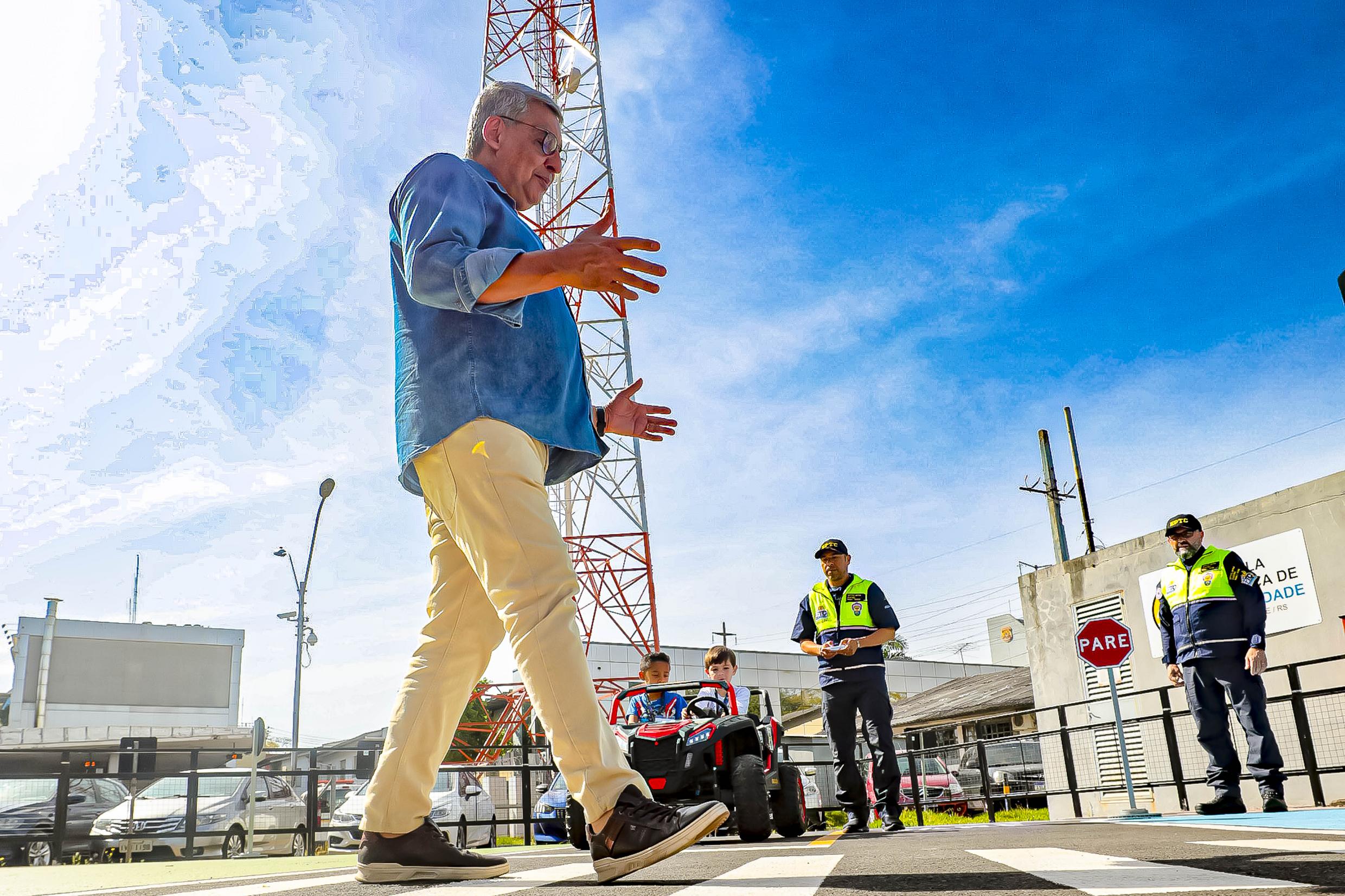 Porto Alegre, RS, Brasil, 18/9/2025: A Prefeitura de Porto Alegre, por meio da Secretaria Municipal de Mobilidade Urbana (SMMU) e da Empresa Pública de Transporte e Circulação (EPTC), realizou a entrega do Circuito Infantil de Trânsito da Escola Pública de Mobilidade nesta quinta-feira, 18, durante evento na rua João Neves da Fontoura, 7, bairro Azenha. O prefeito Sebastião Melo acompanhou a atividade. Foto: Alex Rocha/PMPA