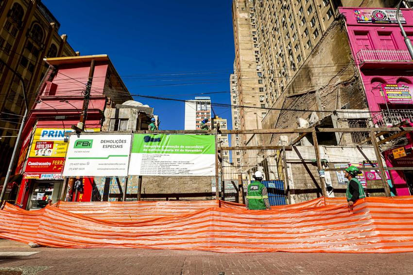 Porto Alegre, RS, Brasil, 23/9/2025: A demolição do Edifício Galeria XV de Novembro, conhecido por Esqueletão, entra em sua fase final. Foto: Alex Rocha/PMPA