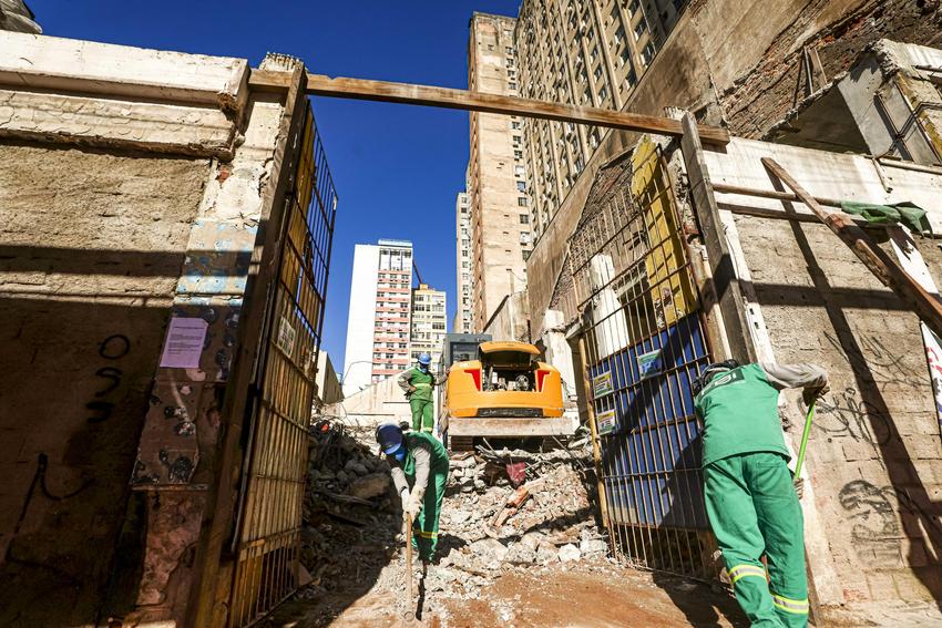 Porto Alegre, RS, Brasil, 23/9/2025: A demolição do Edifício Galeria XV de Novembro, conhecido por Esqueletão, entra em sua fase final. Foto: Alex Rocha/PMPA