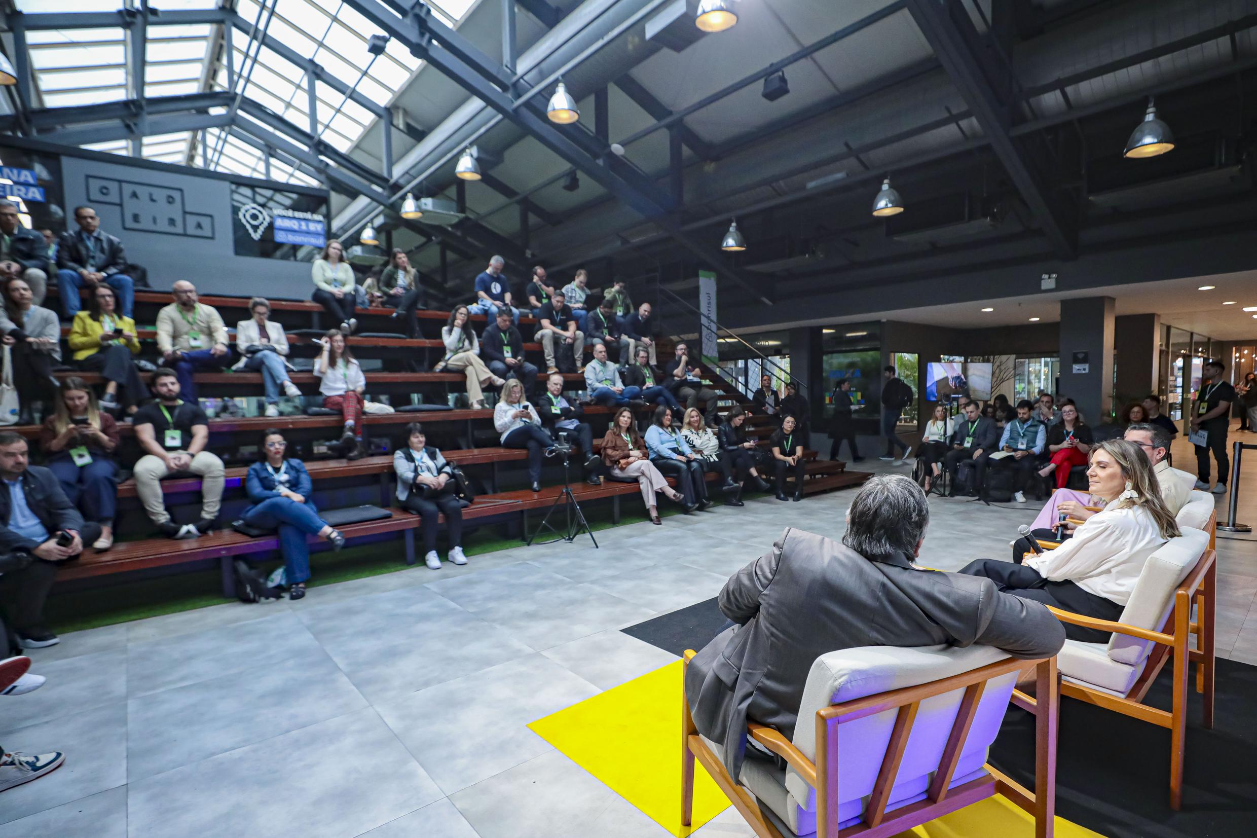 Porto Alegre, RS, Brasil, 30/9/2025: Na manhã desta terça-feira (30), ocorreu dentro da programação da Semana Caldeira 2025 a palestra " Inovação Aberta no Setor Público". O painel abordou as possibilidades e os desafios da inovação aberta aplicada ao setor público, explorando como o modelo Business to Government (B2G) pode gerar impacto positivo em políticas, serviços e na relação com a sociedade. A discussão destacou práticas que aproximam empresas, startups e governos na busca por soluções inovadoras, trazendo exemplos de casos concretos de contratação e parcerias já realizadas no setor público. Além de apresentar instrumentos e caminhos possíveis, o painel debateu como superar barreiras regulatórias e culturais, ampliando o espaço para iniciativas colaborativas que tragam eficiência, transparência e valor público. Foto: Alex Rocha/PMPA
