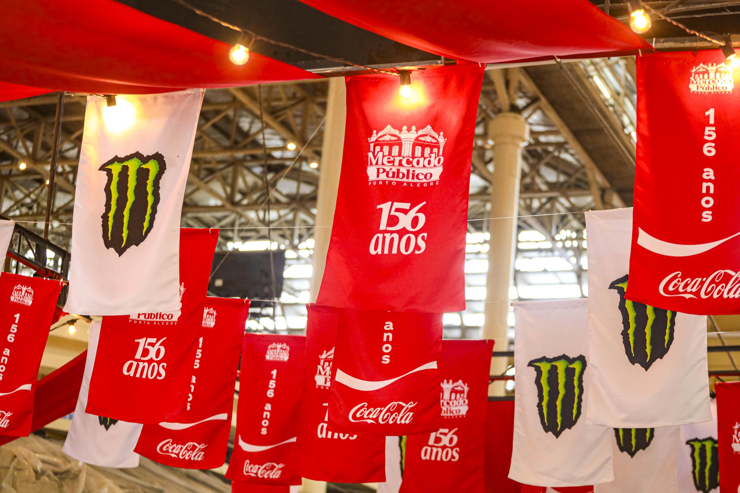 Porto Alegre, RS, Brasil, 01º/10/2025: Os 156 anos do Mercado Público, comemorados em 3 de outubro, serão celebrados com uma decoração especial neste ano. Os corredores internos e pórticos de entrada receberam faixas, bandeirolas centrais e iluminação. Áreas instagramáveis foram projetadas para que os visitantes participem das comemorações. Confira aqui a programação do aniversário. Foto: Alex Rocha/PMPA