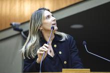 Porto Alegre, RS, Brasil, 01º/10/2025: A presidente da Companhia de Processamentos de Dados do Município de Porto Alegre (Procempa), Leticia Batistela, participou, na tarde desta quarta-feira (01º), no plenário Otávio Rocha da Câmara Municipal de Vereadores de Porto Alegre (CMPA), de audiência pública para apresentação das entregas da gestão da Empresa. Foto: Alex Rocha/PMPA