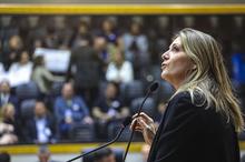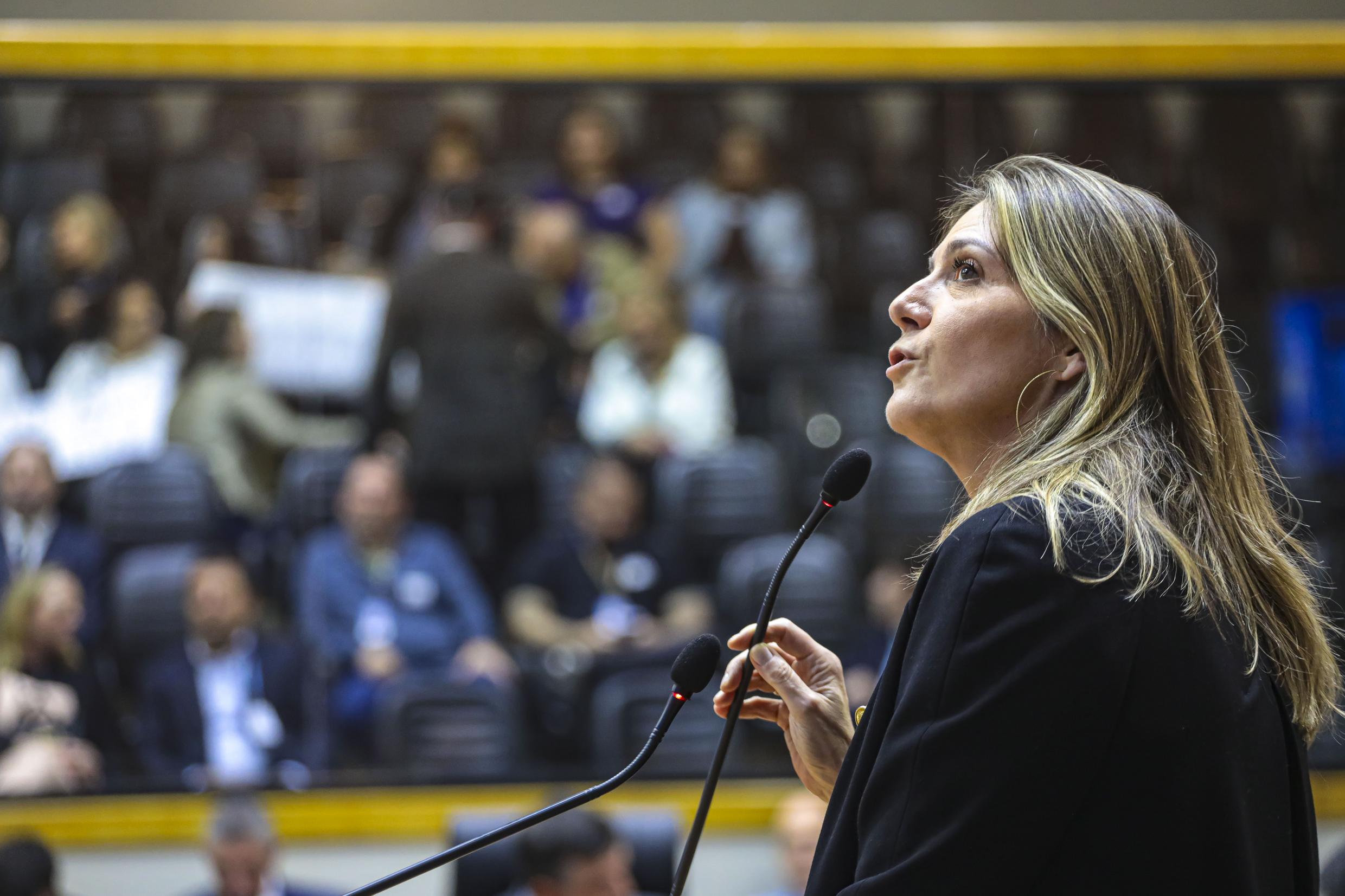 Porto Alegre, RS, Brasil, 01º/10/2025: A presidente da Companhia de Processamentos de Dados do Município de Porto Alegre (Procempa), Leticia Batistela, participou, na tarde desta quarta-feira (01º), no plenário Otávio Rocha da Câmara Municipal de Vereadores de Porto Alegre (CMPA), de audiência pública para apresentação das entregas da gestão da Empresa. Foto: Alex Rocha/PMPA