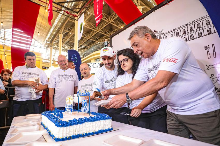 Porto Alegre, RS, Brasil, 03/10/2025: O Mercado Público completa 156 anos nesta sexta-feira, 3, e preparou uma programação especial de comemoração. Às 12h, aconteceu o Parabéns a você, com o Concerto Orquestra Jovem do RS, e o tradicional bolo de aniversário. Até 31 de outubro, haverá apresentações de samba e jazz e maratona, entre outras atividades. Foto: Alex Rocha/PMPA
