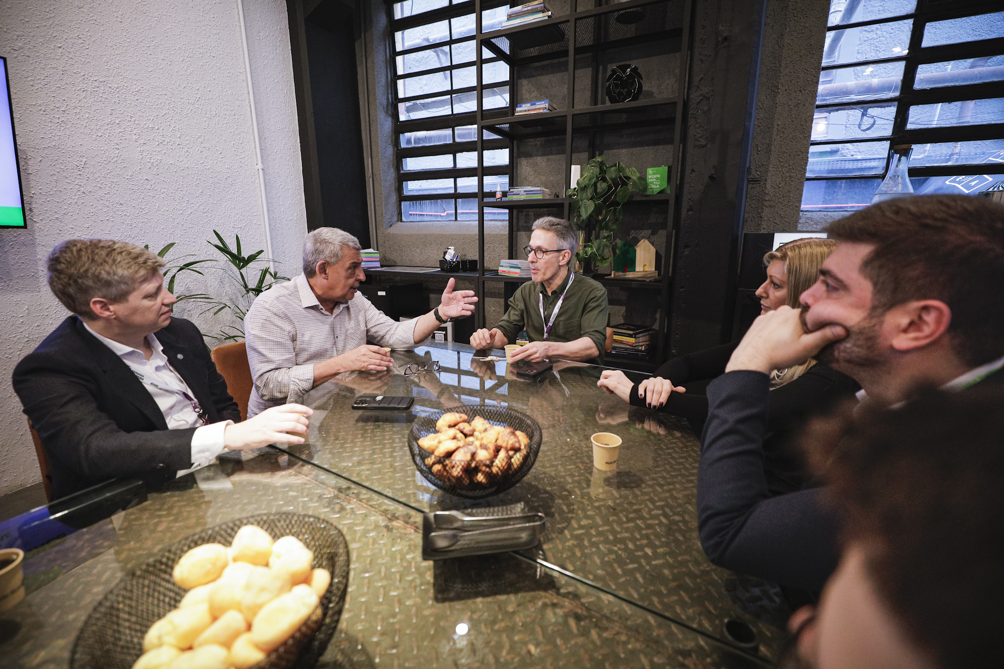 Porto Alegre, RS, Brasil. - 03/10/2025 - Prefeito Sebastião Melo e a Vice-prefeita Betina Worm recebem o Governador de Minas Gerais Romeu Zema na Semana do Caldeira. Local: Instituto Caldeira, Tv. São José, 455 - Navegantes. Fotos: Cesar Lopes/ PMPA