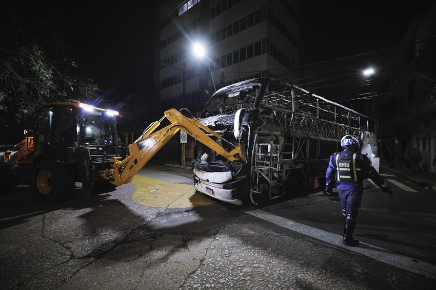 Porto Alegre, RS, Brasil - 03/10/2025 - Prefeito Sebastião Melo junto das equipes de segurança e saúde da prefeitura de Porto Alegre, prestam assistência às vitimas do incêndio em ônibus no Centro Histórico. Local: Rua Espírito Santo. Fotos: Cesar Lopes/ PMPA