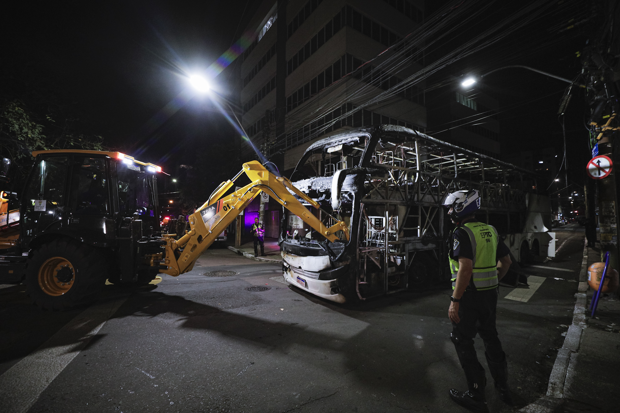 Porto Alegre, RS, Brasil - 03/10/2025 - Prefeito Sebastião Melo junto das equipes de segurança e saúde da prefeitura de Porto Alegre, prestam assistência às vitimas do incêndio em ônibus no Centro Histórico. Local: Rua Espírito Santo. Fotos: Cesar Lopes/ PMPA