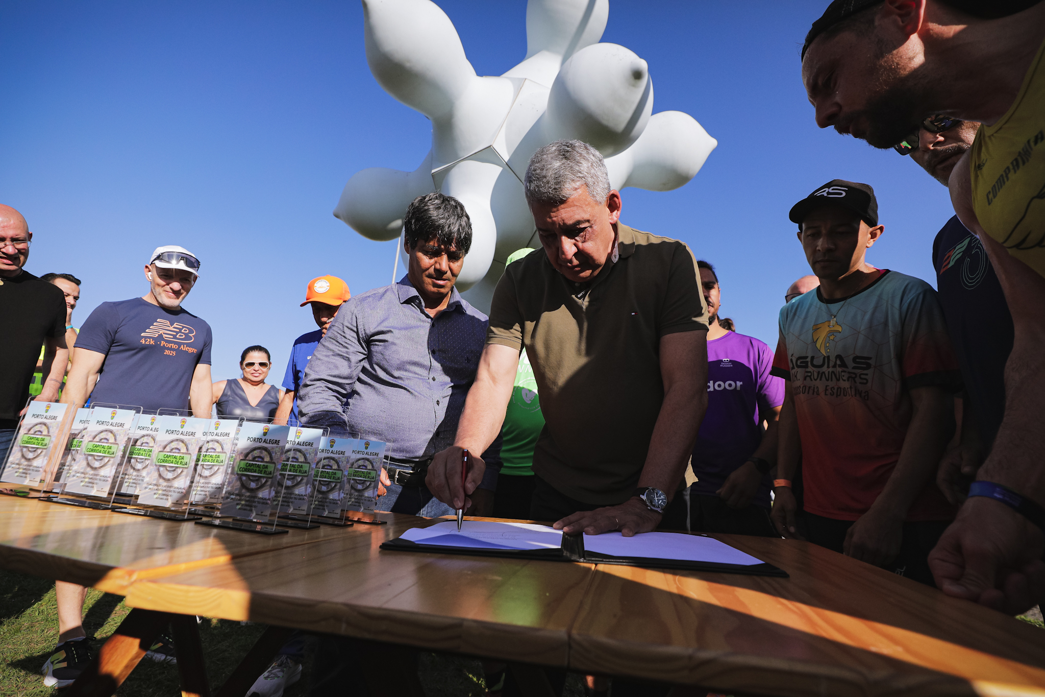 Porto Alegres, RS, Brasil - 04/10/2025 - Sanção de Lei - Porto Alegre - Capital da corrida de rua. Local: Rótula das Cuias. Fotos: Cesar Lopes/ PMPA
