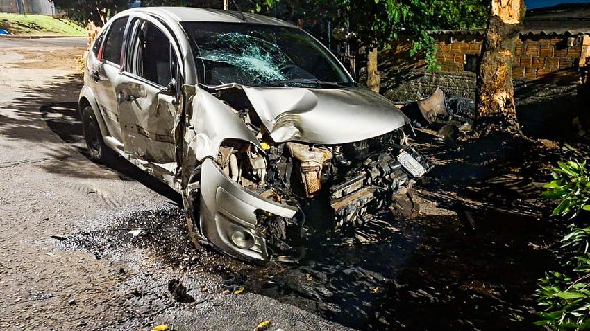 Porto Alegre, RS, Brasil - 06/10/2025: Veiculo abandonado na avenida Sargento Manoel Raymundo Soares, 400, bairro Jardim Carvalho, após sinistro de trânsito ocorrido na madrugada de sábado, 4. A Empresa Pública de Transporte e Circulação (EPTC) divulgou, nesta segunda-feira, 6, o balanço da sinistralidade registrada no trânsito de Porto Alegre durante o final de semana. O levantamento compreende o período entre as 18h de sexta-feira, 4, e as 6h desta segunda-feira, 6. Foto: Divulgação/ EPTC/PMPA