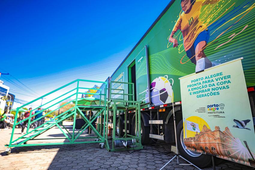 Porto Alegre, RS, Brasil, 07/10/2025: Entre esta segunda-feira, 6, e o dia 12 de outubro, Porto Alegre recebe a Caravana do Futebol Feminino. A exposição itinerante, com visitação gratuita, ficará instalada no estacionamento do Parque Marinha do Brasil, em frente ao Shopping Praia de Belas (avenida Borges de Medeiros, 2651). A ação é uma parceria entre a Prefeitura de Porto Alegre, por meio da Secretaria Extraordinária da Copa do Mundo Feminina de Futebol 2027 (Secopa), e a Petrobras. Foto: Alex Rocha/PMPA