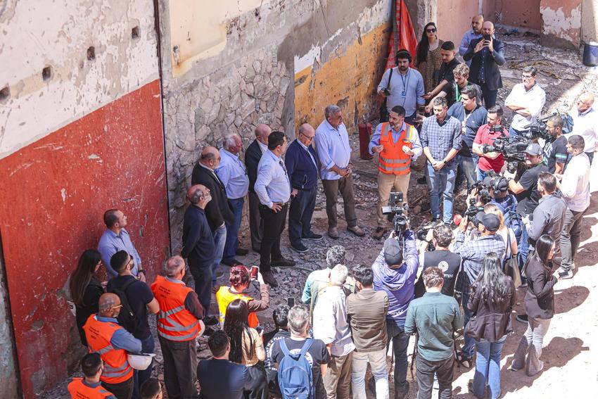 Porto Alegre, RS, Brasil, 09/10/2025: A Prefeitura de Porto Alegre realizou, nesta quinta-feira, 9, às 11h15, a vistoria final da demolição do Edifício Galeria XV de Novembro, conhecido como Esqueletão. O prefeito Sebastião Melo e os secretários municipais de Obras e Infraestrutura (Smoi), André Flores, e de Planejamento e Gestão (SMPG), Cezar Schirmer, participaram do ato que marca a conclusão dos trabalhos. A atividade foi realizada no canteiro de obras, localizado entre as ruas Marechal Floriano Peixoto e Otávio Rocha, no Centro Histórico. Foto: Alex Rocha/PMPA