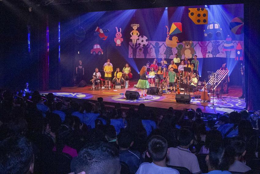 Porto Alegre, RS, Brasil, 09/10/2025: Concerto Tindolelê do Sons do Morro da EMEF Professora Judith Macedo de Araújo. O espetáculo foi realizado no Teatro Renascença, no bairro Menino Deus. Foto: Henry Rodrigues/SMED