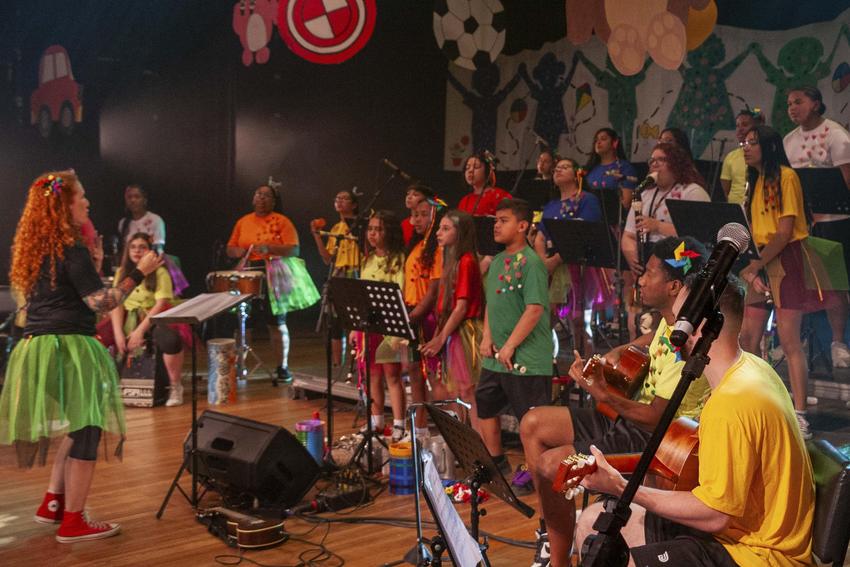 Porto Alegre, RS, Brasil, 09/10/2025: Concerto Tindolelê do Sons do Morro da EMEF Professora Judith Macedo de Araújo. O espetáculo foi realizado no Teatro Renascença, no bairro Menino Deus. Foto: Henry Rodrigues/SMED