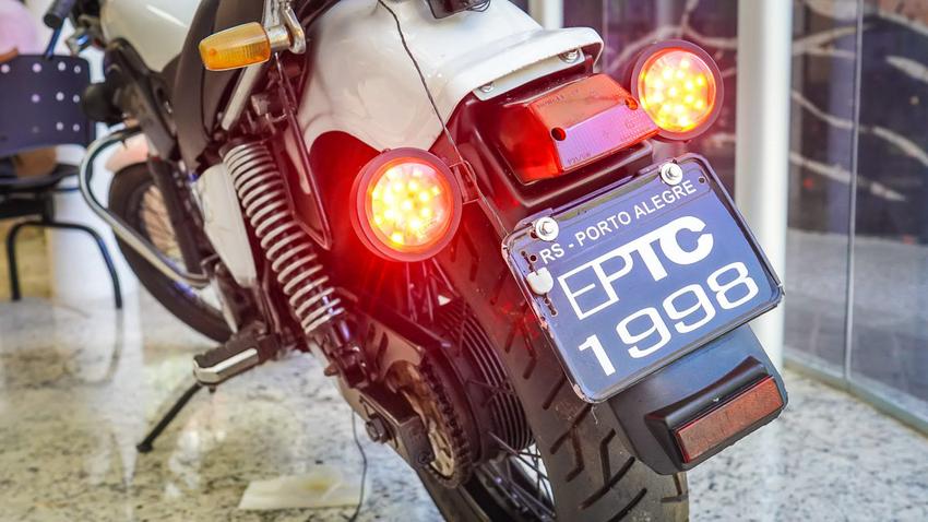 Porto Alegre, RS, Brasil - 08/10/2025: A Empresa Pública de Transporte e Circulação (EPTC) restaurou a primeira motocicleta utilizada no patrulhamento da mobilidade urbana em Porto Alegre. O veículo histórico, que marcou o início das atividades de fiscalização motorizada na cidade, passa agora a integrar o acervo institucional da empresa. A motocicleta ficará em exposição na Central de Atendimento ao Cidadão 118, permitindo que a comunidade conheça de perto um marco da evolução do trabalho da EPTC e da história da mobilidade na capital. Com a iniciativa, a EPTC valoriza sua memória e reforça a importância da preservação do patrimônio ligado à segurança e organização do trânsito em Porto Alegre. Foto: Gustavo Roth/EPTC/ PMPA