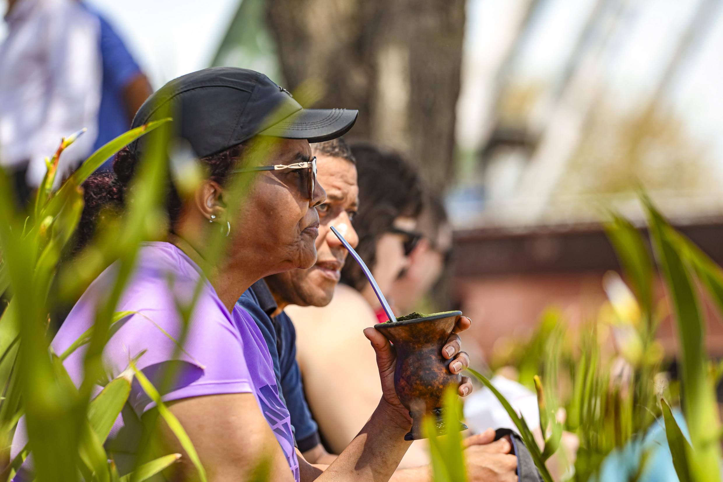 Porto Alegre, RS, Brasil, 11/10/2025: Neste sábado, 11, a capital gaúcha celebra uma das principais tradições gaúchas: o chimarrão. Com apoio da Secretaria Municipal de Desenvolvimento Econômico, Turismo e Eventos (SMDETE), o evento A Hora do Mate será realizado na Trecho 1 da Orla do Guaíba, a partir das 11h. Além das rodas de mate, a programação inclui espaços gastronômicos, shows musicais, brincadeiras para as crianças e a chamada Alameda do Mate, onde o público terá a oportunidade de conhecer mais sobre costumes e história do chimarrão. Foto: Alex Rocha/PMPA