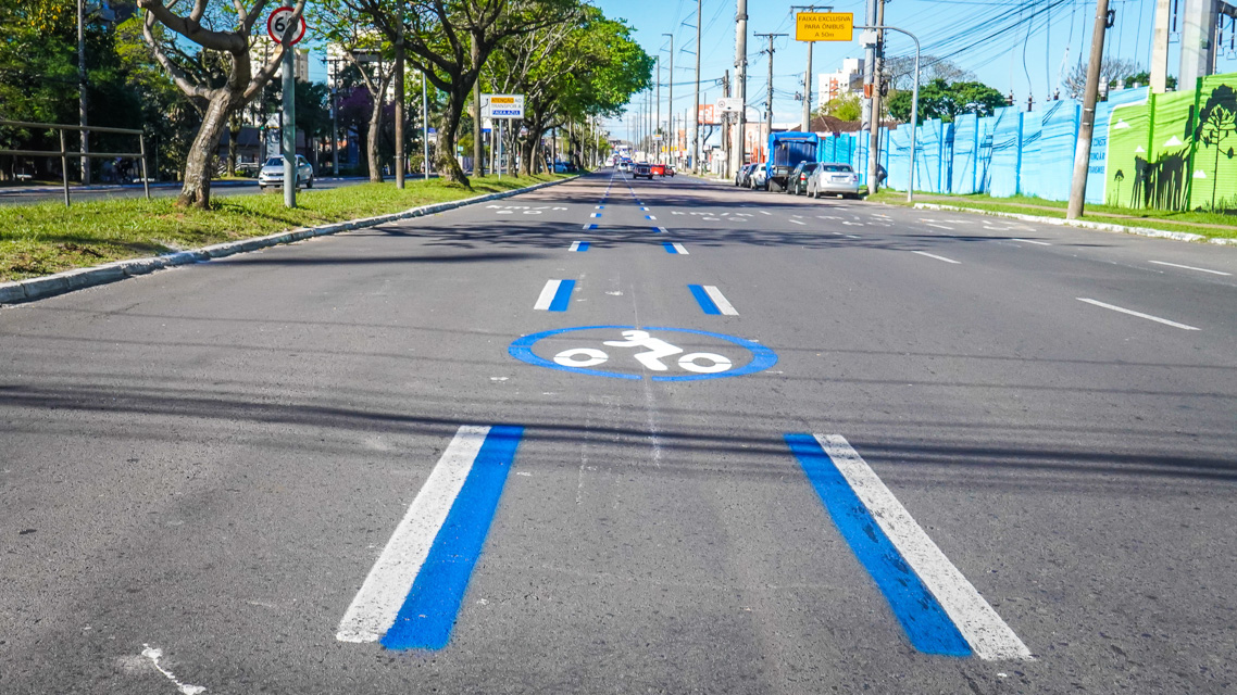 Porto Alegre, RS, Brasil - 10/10/2025: A Empresa Pública de Transporte e Circulação (EPTC) foi autorizada a implantar um projeto experimental de motofaixa de aproximadamente quatro quilômetros na avenida Assis Brasil, entre a avenida Joaquim Silveira, a partir do Terminal Triângulo, e a avenida Bernardino Silveira Amorim, no sentido Centro-bairro, próximo à Fiergs. A sinalização de faixa preferencial para circulação de motociclistas não está prevista no Código de Trânsito Brasileiro (CTB) e, por isso, depende de autorização específica da Secretaria Nacional de Transito (Senatran) para fins de estudo experimental. O objetivo do projeto é melhorar a circulação e reduzir os sinistros com envolvimento de motociclistas nesse trecho. Foto: Gustavo Roth/EPTC/PMPA
