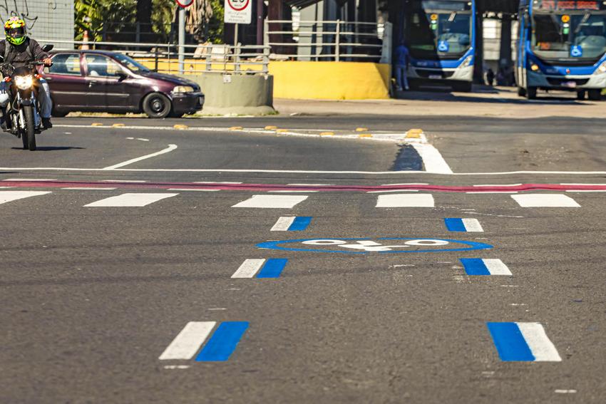 Porto Alegre, RS, Brasil, 14/10/2025: A Empresa Pública de Transporte e Circulação (EPTC) realizou nesta terça-feira, 14, a vistoria da nova sinalização implantada para a motofaixa da avenida Assis Brasil, na Zona Norte da Capital. O projeto foi implementado no sentido Centro-bairro da via, a partir do cruzamento com a avenida Joaquim Silveira, no bairro Sarandi. O prefeito Sebastião Melo, e o diretor-presidente da EPTC, Pedro Bisch Neto, acompanharam a agenda. Foto: Alex Rocha/PMPA