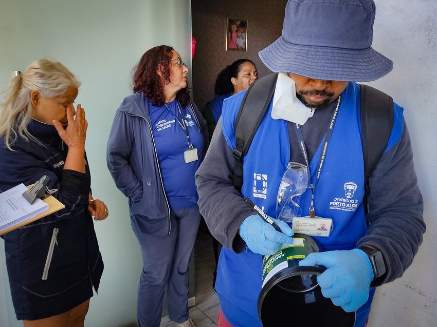 Porto Alegre, RS, 08/10/2025 O bairro Passo das Pedras é o primeiro de Porto Alegre a receber a nova tecnologia de armadilhas utilizadas para controle do mosquito Aedes aegypti, transmissor da dengue. As chamadas estações disseminadoras de larvicidas (EDLs). As regiões foram escolhidas por critérios técnicos e pelo histórico de casos de dengue nos anos mais recentes. O projeto é desenvolvido pelo Ministério da Saúde, através da Fundação Oswaldo Cruz (Fiocruz). A instalação das EDLs foi coordenada pelos técnicos da Diretoria de Vigilância em Saúde (DVS), Unidade de Vigilância Ambiental, pelos agentes de combate às endemias (ACE) e agentes comunitário de saúde (ACS) das unidades de saúde Passo das pedras I e II. Foto: Vanessa Conte/PMPA