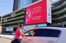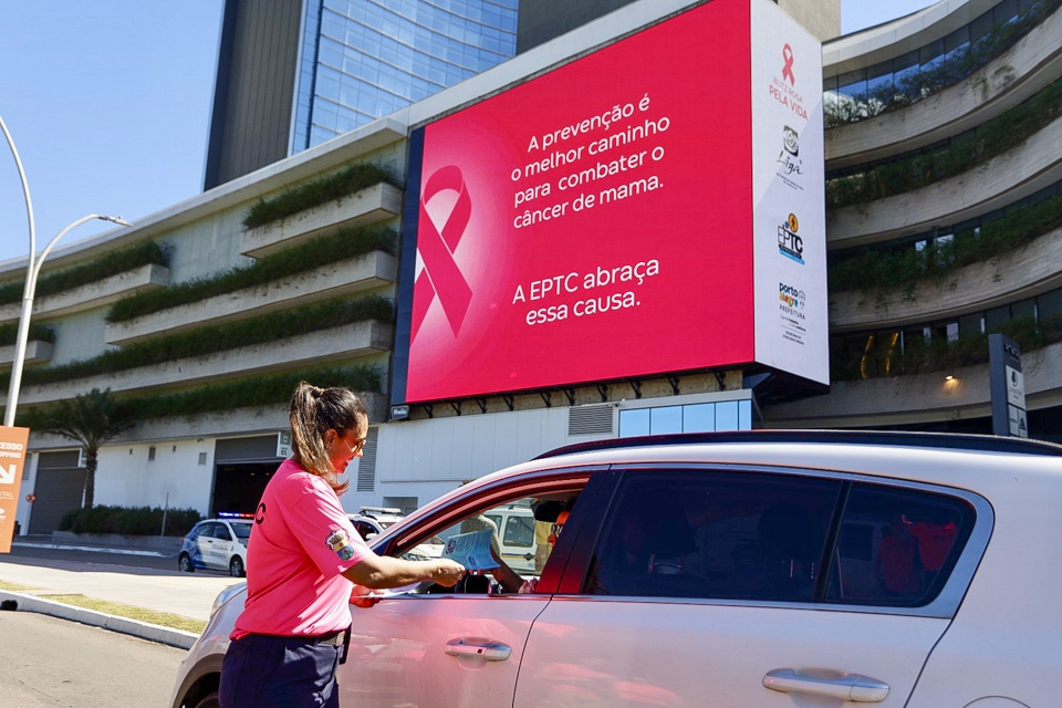 Porto Alegre, RS, Brasil - 14/10/2025: Ação Blitz Rosa Pela Vida promovida pelas agentes de fiscalização da EPTC na tarde desta terça-feira, 14. Com camisetas rosas e mensagens de prevenção, lacinhos e rosas, as agentes levaram às ruas o alerta sobre a importância do diagnóstico precoce do câncer de mama. Foto: Arthur Woltmann/EPTC/PMPA