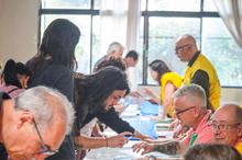 Porto Alegre, RS, Brasil, 15/10/2025: O Departamento Municipal de Habitação (Demhab) realizou nesta quarta-feira, 15, a maior entrega de matrículas do ano, beneficiando 240 moradores no bairro Santa Rosa de Lima, na Zona Norte da Capital. O evento marca o início do processo de regularização fundiária urbana (Reurb) na localidade. A cerimônia aconteceu a partir das 18h30, no Salão Paroquial da Igreja Santa Rosa de Lima, na avenida Bernardino de Oliveira Paim, 82, e contou com as presenças do prefeito Sebastião Melo e do diretor-geral do Demhab, André Machado. Foto: Alex Rocha/PMPA