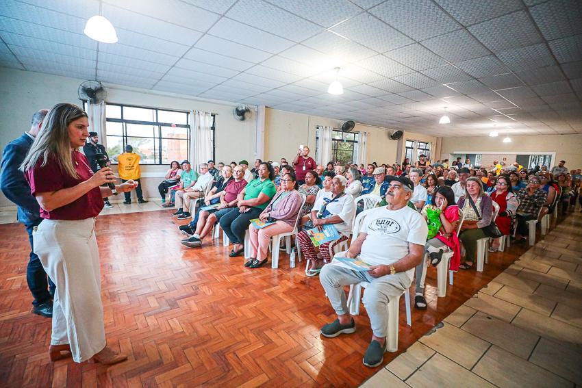 Porto Alegre, RS, Brasil, 15/10/2025: O Departamento Municipal de Habitação (Demhab) realizou nesta quarta-feira, 15, a maior entrega de matrículas do ano, beneficiando 240 moradores no bairro Santa Rosa de Lima, na Zona Norte da Capital. O evento marca o início do processo de regularização fundiária urbana (Reurb) na localidade. A cerimônia aconteceu a partir das 18h30, no Salão Paroquial da Igreja Santa Rosa de Lima, na avenida Bernardino de Oliveira Paim, 82, e contou com as presenças do prefeito Sebastião Melo e do diretor-geral do Demhab, André Machado. Foto: Alex Rocha/PMPA