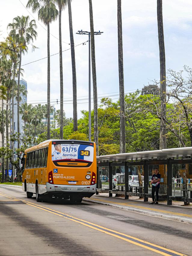 Porto Alegre, RS, 16/10/2025: Instalação dos novos abrigos de passageiros na avenida Osvaldo Aranha. As estruturas tem piso podotátil, espaço para cadeirantes, iluminação artificial, três tomadas USB e proteção para vento e chuva. Foto: Alex Rocha/PMPA