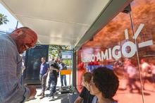 Porto Alegre, RS, Brasil, 22/10/2025: A Prefeitura de Porto Alegre, por meio da Secretaria de Mobilidade Urbana (SMMU), com apoio da Eletromidia e Claro, realizou nesta quarta-feira, 22, às 11h, a vistoria do primeiro ponto do abrigo amigo da cidade. O projeto transforma pontos de ônibus em locais de acolhimento, com possibilidade de acionamento de uma central de atendimento por vídeo. O primeiro ponto foi instalado na avenida Osvaldo Aranha, 909, bairro Bom Fim. No local, foi apresentado o funcionamento do sistema, além do impacto e os próximos passos da iniciativa na capital gaúcha. Foto: Alex Rocha/PMPA
